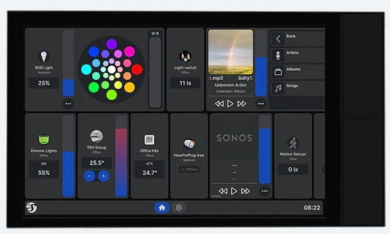 Smart-Home-Bedienpanel mit 10,1"-Touchdisplay, integriertem Schaltrelais und vier individuell konfigurierbaren Tasten. Lässt sich in eine Standard-Unterputzdose installieren und gibt Dir die volle, einfache Kontrolle über Deine Shelly Geräte – ideal für Häuser, Wohnungen, Hotels und Gewerbeflächen.